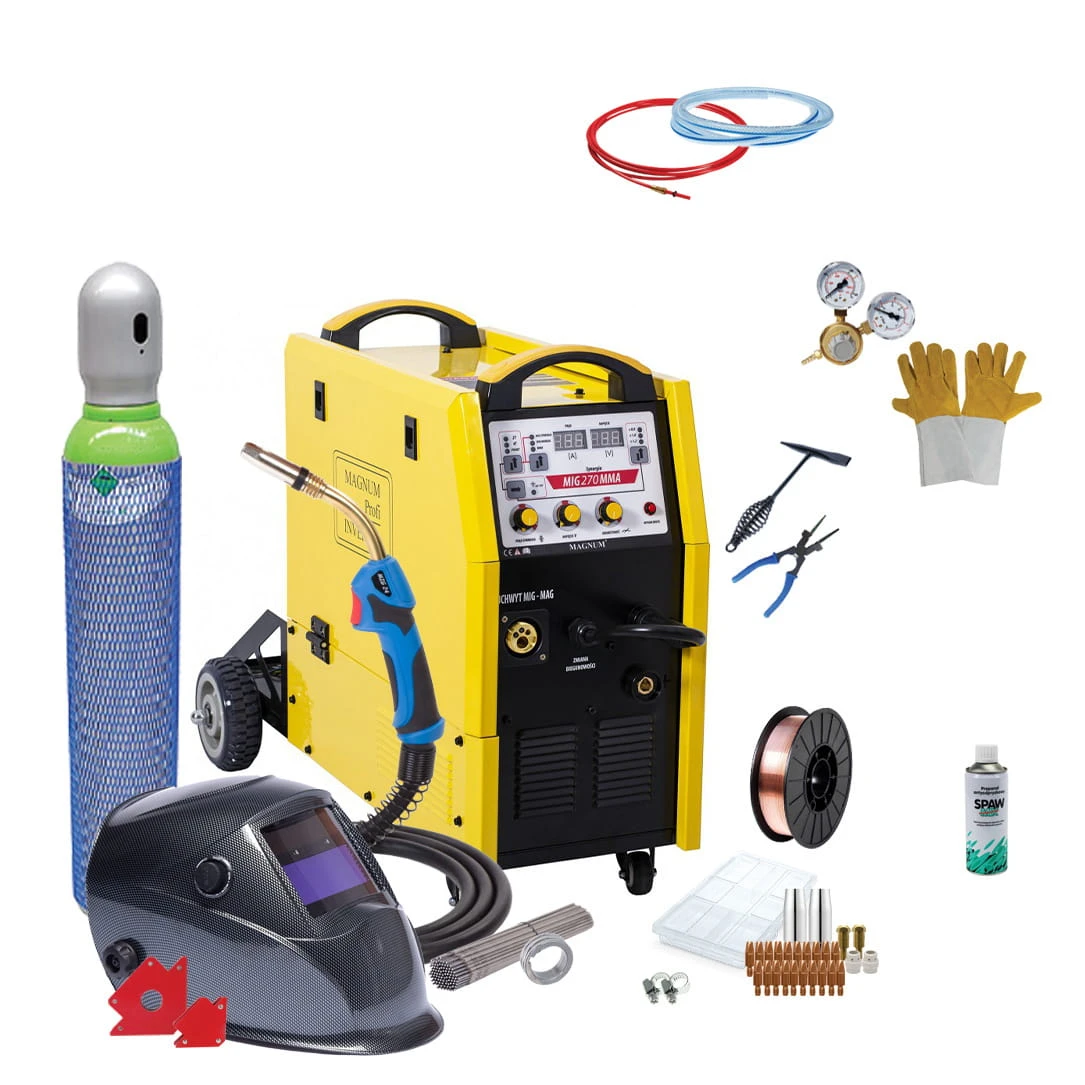 Urządzenie MAGNUM MIG 270 SYNERGIA to profesjonalny półautomat spawalniczy zasilany z sieci trójfazowej 400V o maksymalnym prądzie spawania 270A.