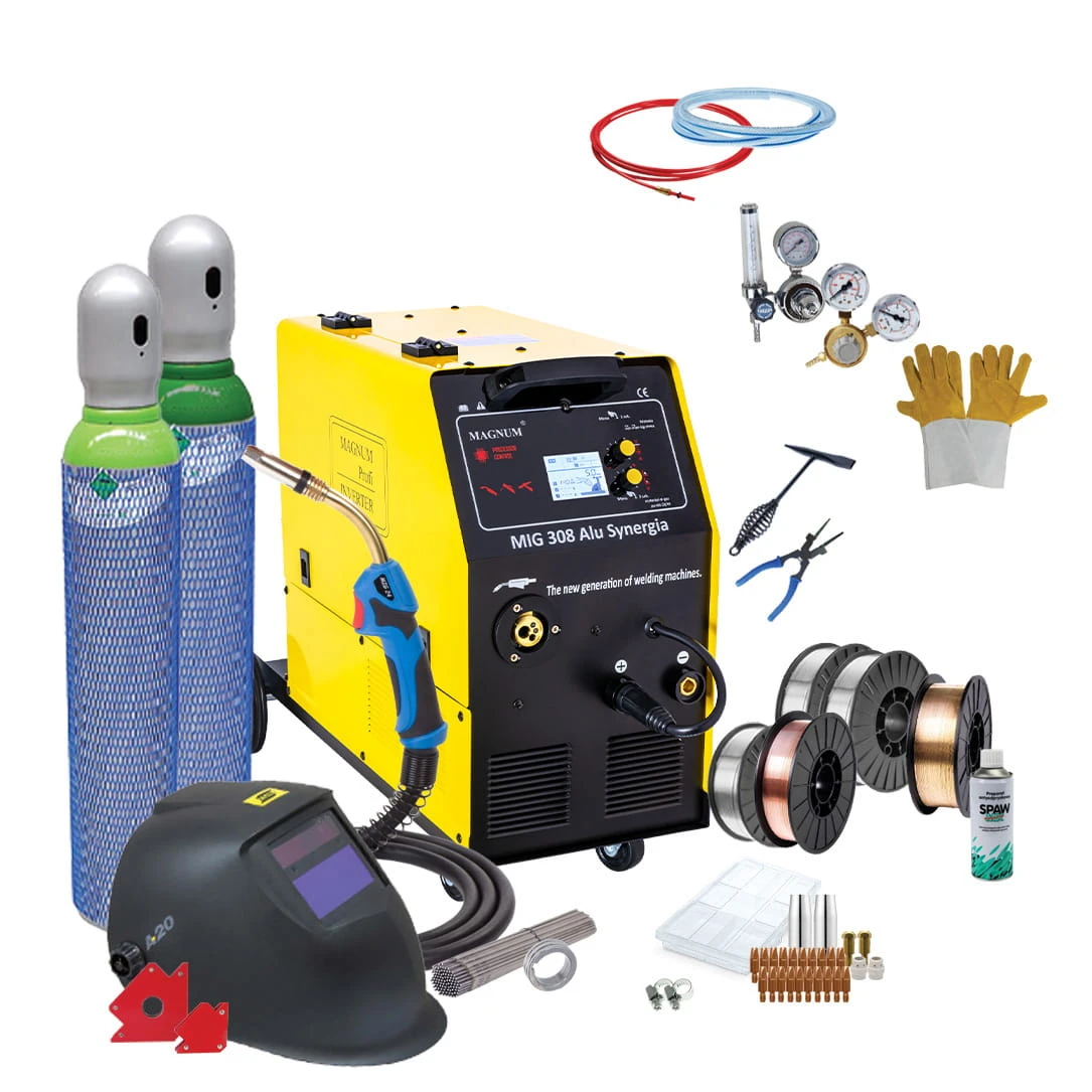 Spawarka MIG 308 ALU SYNERGIA marki MAGNUM jest profesjonalnym półautomatem spawalniczym wykonanym w technologii inwertorowej, zasilanym z sieci trójfazowej 400V.