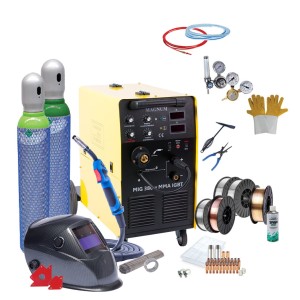 Urządzenie MAGNUM MIG 380w MMA IGBT to profesjonalny półautomat spawalniczy zasilany z sieci trójfazowej 400V o maksymalnym prądzie spawania 380A. Urządzenie umożliwia spawanie łukowe drutem topliwym MIG/MAG, drutem samoosłonowym FCAW (należy zmienić biegunowość w spawarce: minus (-) na uchwycie spawalniczym, plus (+) na masie!), oraz metodą MMA z wykorzystaniem elektrod otulonych (rutylowych, zasadowych, kwaśnych).