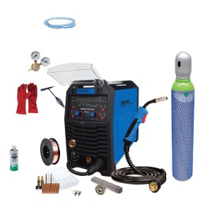 W komplecie znajdują się także przewód masowy, przewód elektrodowy, oraz rolka do spawania aluminium.