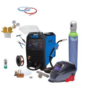 W komplecie znajdują się także przewód masowy, przewód elektrodowy, oraz rolka do spawania aluminium.