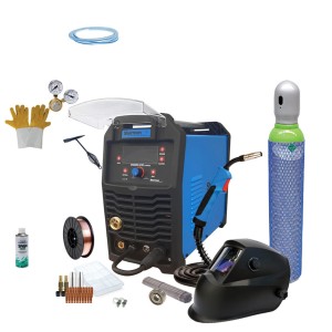W komplecie znajdują się uchwyt MIG, przewód masowy i przewód elektrodowy.