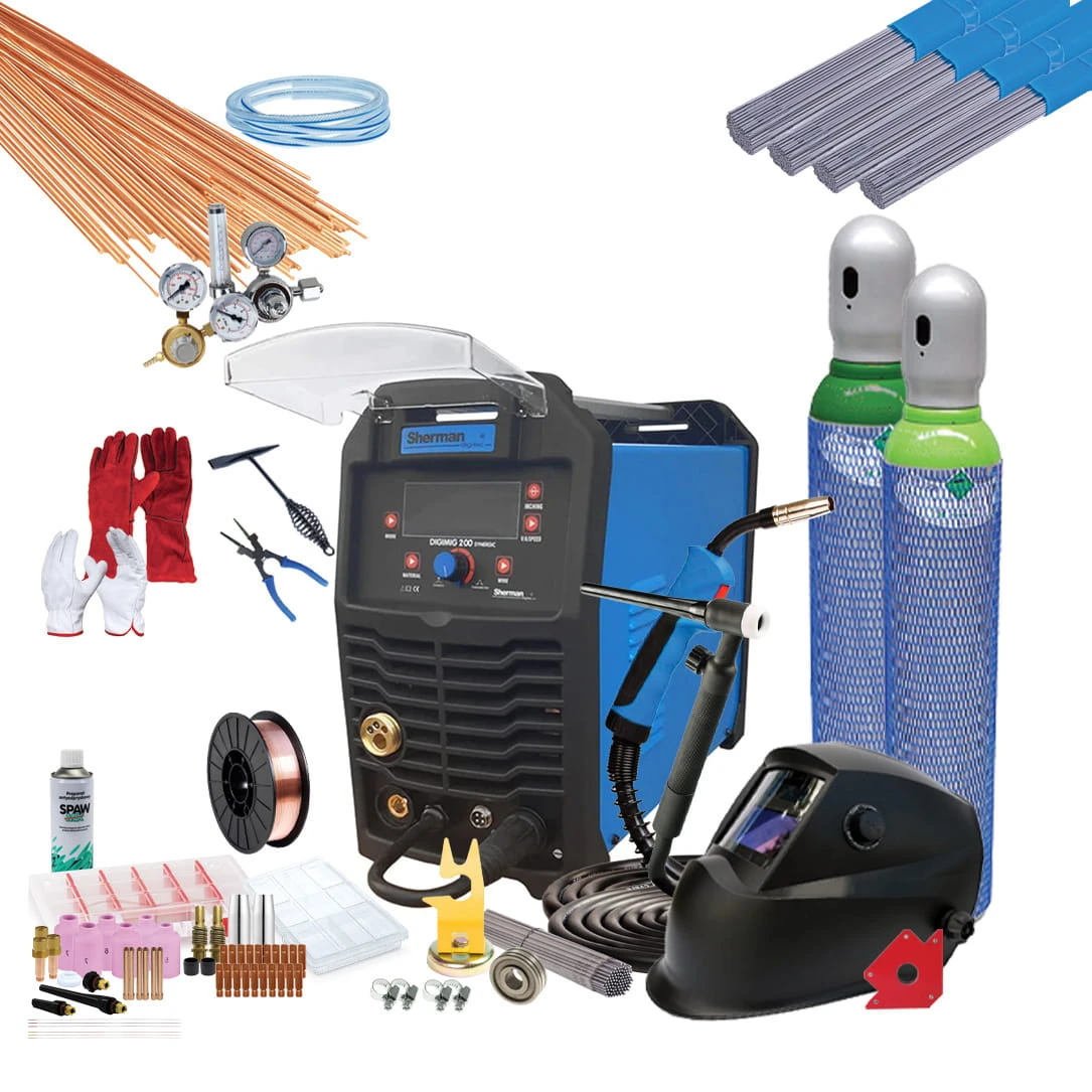 Synergiczna spawarka DIGIMIG 200 SYNERGIC to innowacyjne urządzenie przeznaczone do spawania ręcznego stali i metali kolorowych. Umożliwia spawanie metodami MMA (elektrodą otuloną), TIG Lift, oraz MIG/MAG. Dzięki zmianie polaryzacji urządzenie pozwala spawać metodą MIG/MAG z zastosowaniem zarówno standardowych drutów w osłonie gazów ochronnych, jak i samoosłonowych drutów proszkowych.