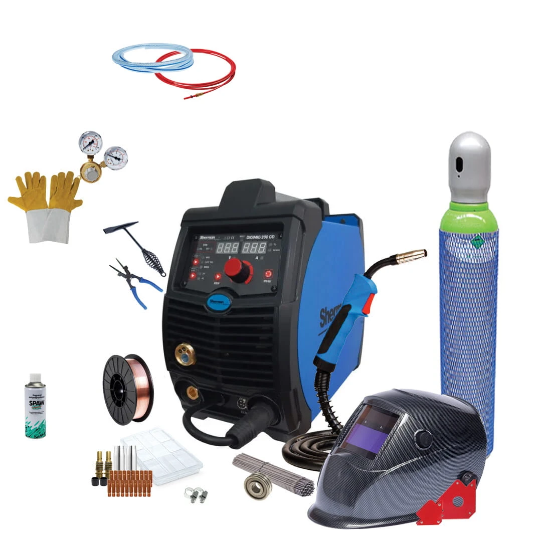 Synergiczna spawarka DIGIMIG 200GD służy do spawania ręcznego stali i metali kolorowych. Urządzenie skierowane jest do zawodowców ceniących jakość i niezawodność. Umożliwia spawanie metodami MIG/MAG, MMA (elektrodą otuloną) i Lift TIG. Stosowane może być również do lutospawania cienkich (do 3mm) blach ocynkowanych. Dzięki zmianie polaryzacji urządzenie pozwala spawać metodą MIG/MAG z zastosowaniem zarówno standardowych drutów w osłonie gazów ochronnych, jak i samoosłonowych drutów proszkowych.