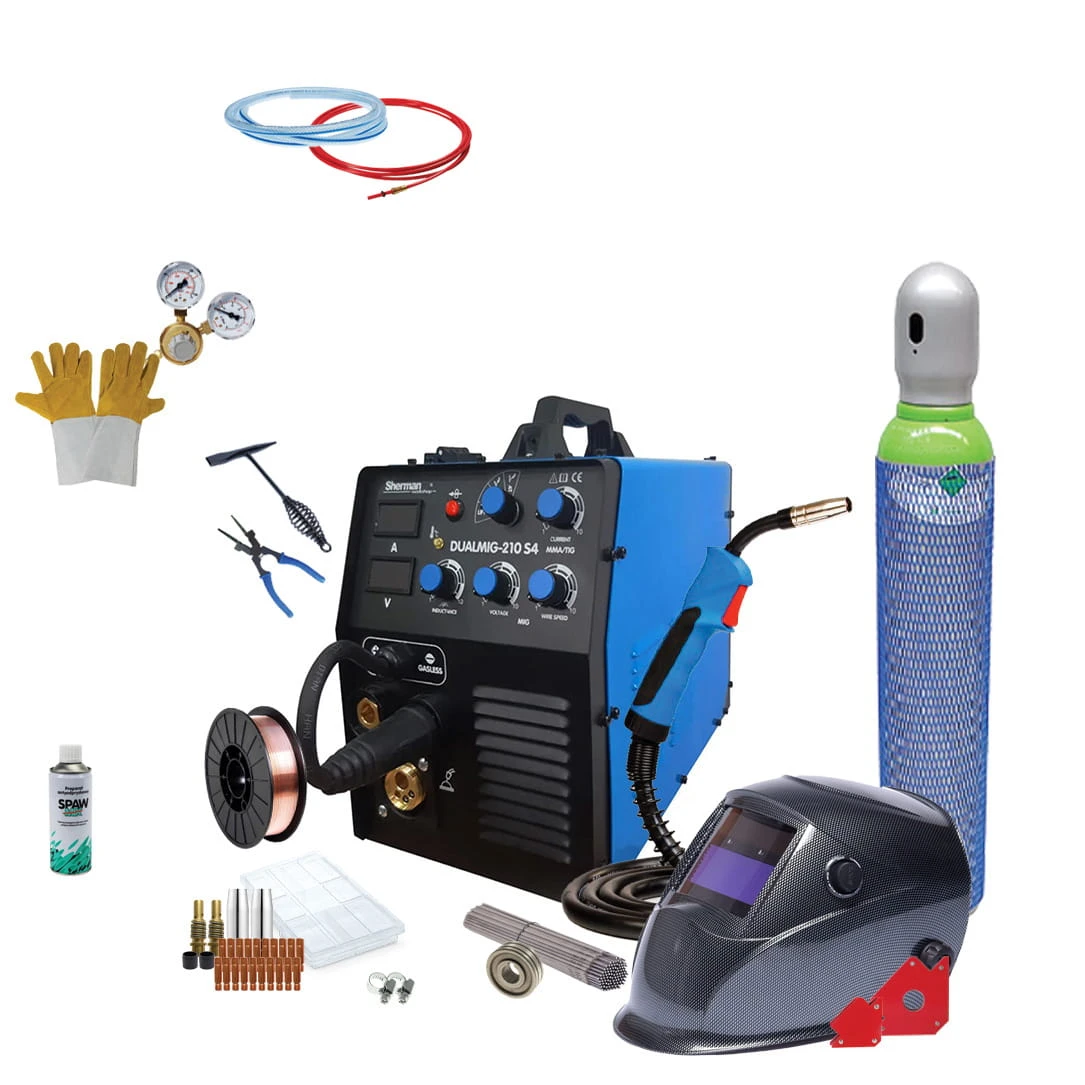 Spawarka półautomatyczna DUALMIG 210 S4 służy do spawania ręcznego stali i metali kolorowych. Umożliwia spawanie metodami MIG/MAG, MMA (elektrodą otuloną) i Lift TIG. Stosowana może być również do lutospawania cienkich (do 3mm) blach ocynkowanych. Dzięki zmianie polaryzacji urządzenie pozwala spawać metodą MIG/MAG z zastosowaniem zarówno standardowych drutów w osłonie gazów ochronnych jak i samoosłonowych drutów proszkowych.