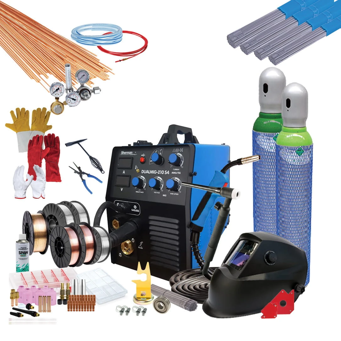Spawarka półautomatyczna DUALMIG 210 S4 służy do spawania ręcznego stali i metali kolorowych. Umożliwia spawanie metodami MIG/MAG, MMA (elektrodą otuloną) i Lift TIG. Stosowana może być również do lutospawania cienkich (do 3mm) blach ocynkowanych. Dzięki zmianie polaryzacji urządzenie pozwala spawać metodą MIG/MAG z zastosowaniem zarówno standardowych drutów w osłonie gazów ochronnych jak i samoosłonowych drutów proszkowych.