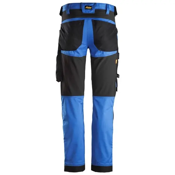 Uniwersalne spodnie robocze stworzone z elastycznego materiału, zaprojektowane dla maksymalnej swobody ruchów. Spodnie mają wstępnie profilowane nogawki oraz 4-kierunkowe, rozciągliwe panele z tyłu, co zwiększa ich elastyczność. Wzmocnione materiałem CORDURA® kieszenie na nakolanniki KneeGuard™ gwarantują dodatkową ochronę i trwałość. Dodatkowo, spodnie posiadają wzmocnione worki kieszeniowe, kieszeń na miarę składaną oraz kieszenie cargo, które oferują bezpieczne przechowywanie i łatwy dostęp do narzędzi. Wąskie nogawki nadają nowoczesny wygląd.