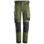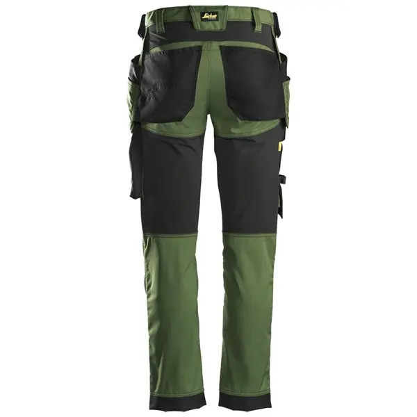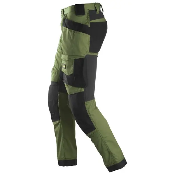 Uniwersalne spodnie robocze stworzone z elastycznego materiału, zaprojektowane dla maksymalnej swobody ruchów. Spodnie mają wstępnie profilowane nogawki oraz 4-kierunkowe, rozciągliwe panele z tyłu, co zwiększa ich elastyczność. Wzmocnione materiałem CORDURA® kieszenie na nakolanniki KneeGuard™ gwarantują dodatkową ochronę i trwałość. Dodatkowo, spodnie posiadają wzmocnione worki kieszeniowe, kieszeń na miarę składaną oraz kieszenie cargo, które oferują bezpieczne przechowywanie i łatwy dostęp do narzędzi. Wąskie nogawki nadają nowoczesny wygląd.