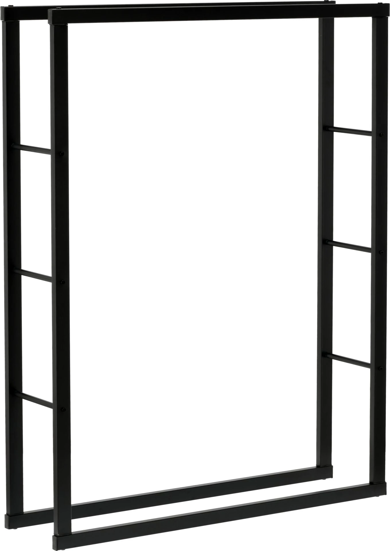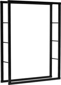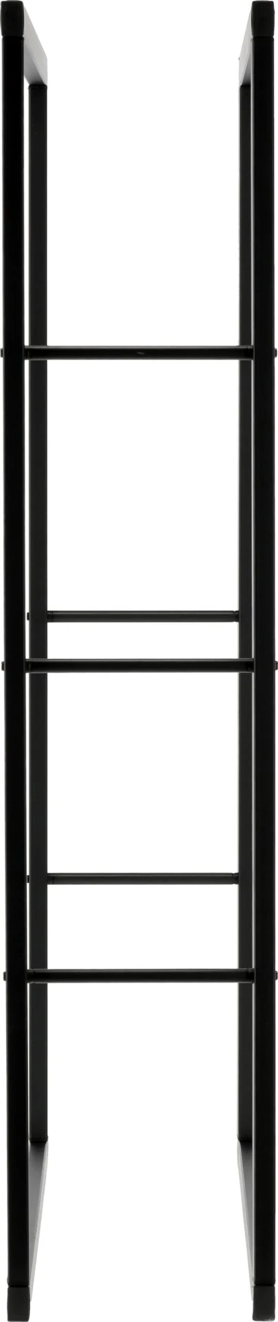 Otwarta budowa zapewnia swobodny przepływ powietrza, co wspiera naturalne dosychanie drewna i ogranicza ryzyko zawilgocenia. Stalowe profile malowane proszkowo na matową czerń zwiększają odporność na wilgoć, zarysowania i codzienne użytkowanie, a przy tym stojak stabilnie utrzymuje większą ilość szczap.