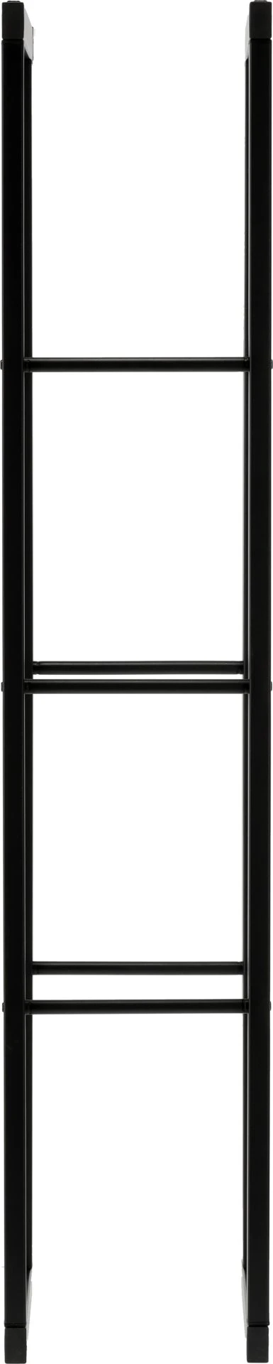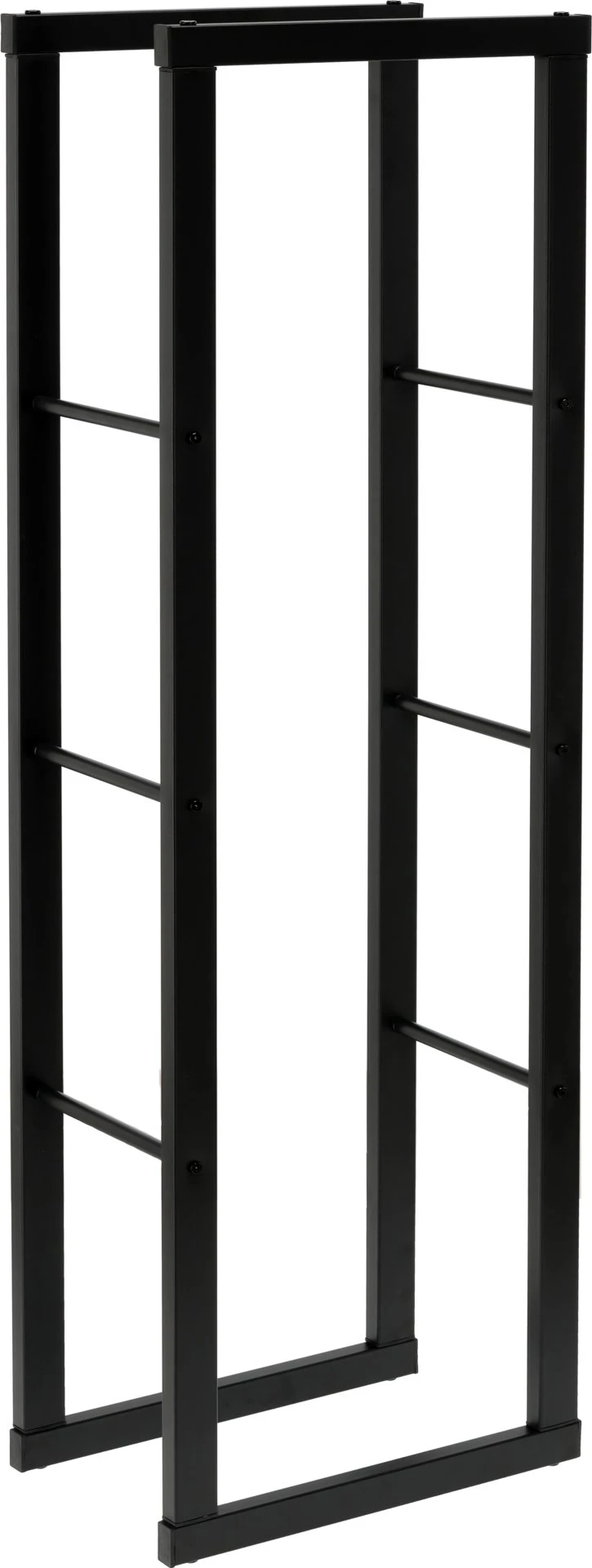 Otwarta budowa zapewnia swobodny przepływ powietrza, co wspiera naturalne dosychanie drewna i ogranicza ryzyko zawilgocenia. Stalowe profile malowane proszkowo na matową czerń zwiększają odporność na wilgoć, zarysowania i codzienne użytkowanie, a przy tym stojak pozostaje stabilny mimo niewielkich wymiarów.