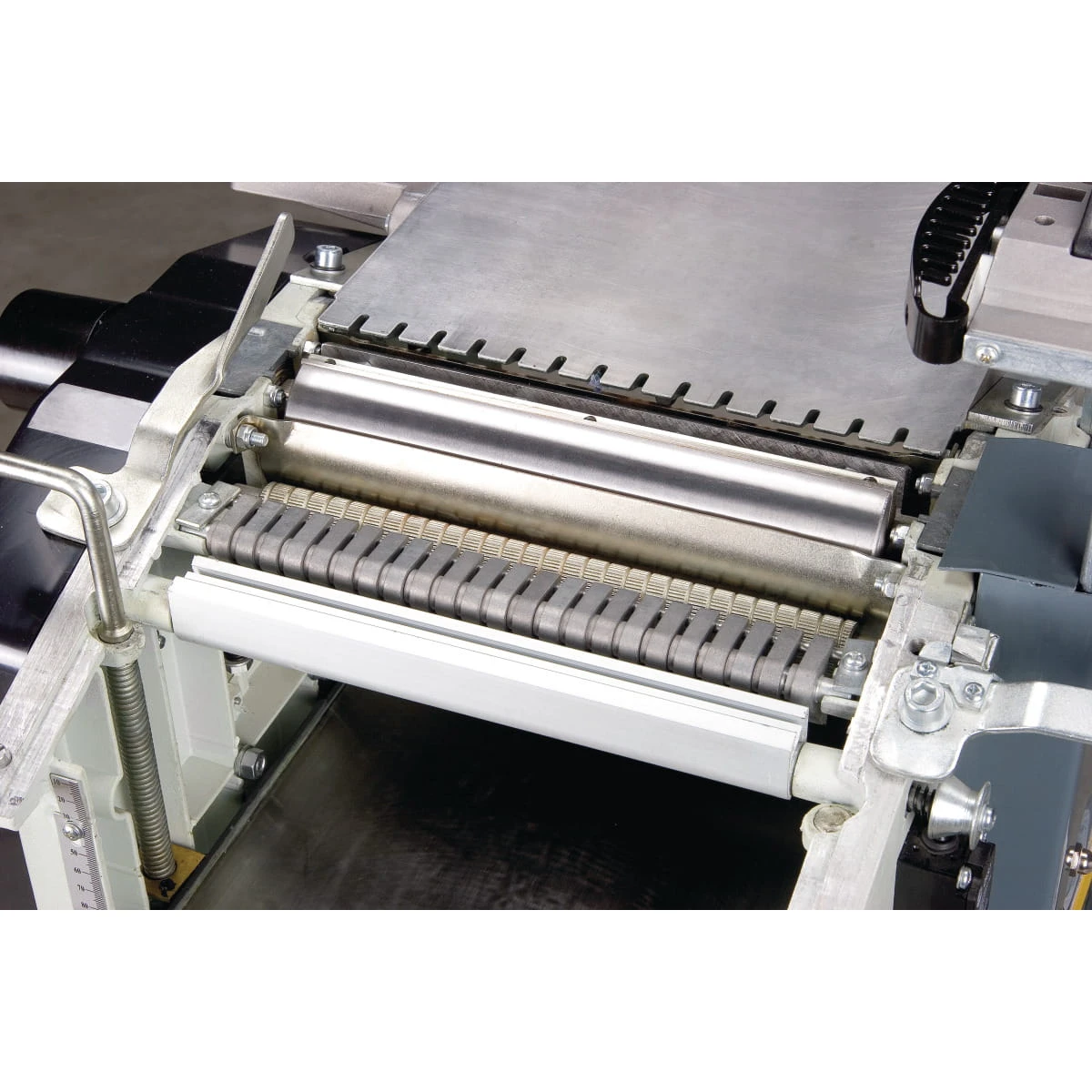 - Gumowany wałek pociągowy chroni powierzchnię podczas strugania grubościowego