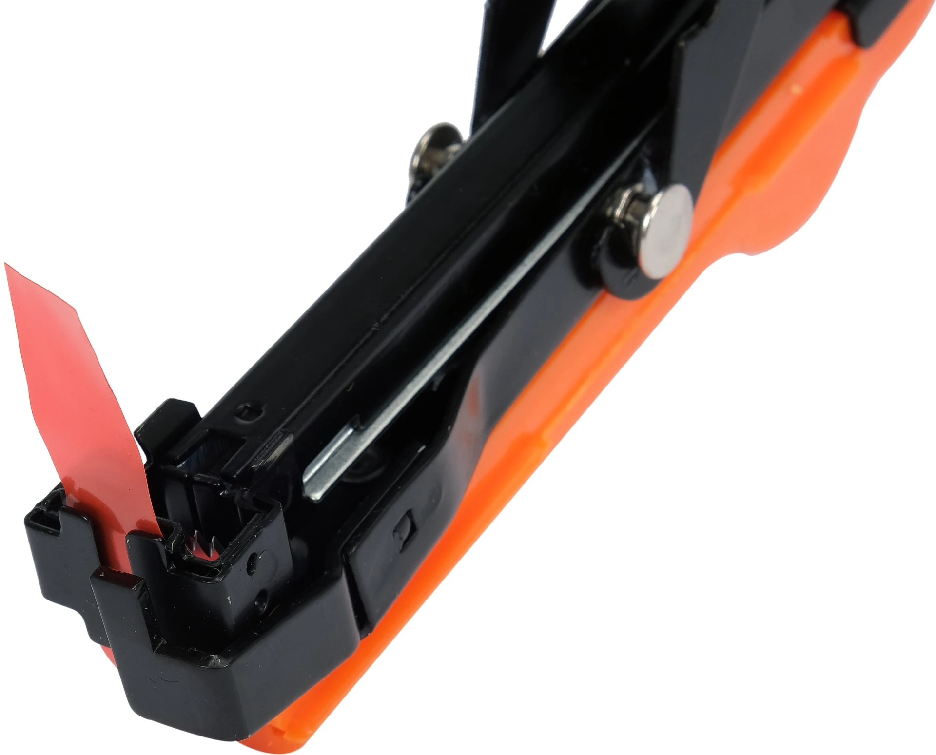 Solidna konstrukcja z korpusem stalowym wykończonym elektroforetycznie zapewnia zwiększoną odporność na korozję, a ostrze wykonane z wytrzymałej stali SK5 gwarantuje precyzyjne i sprawne cięcie taśmy podczas pracy.