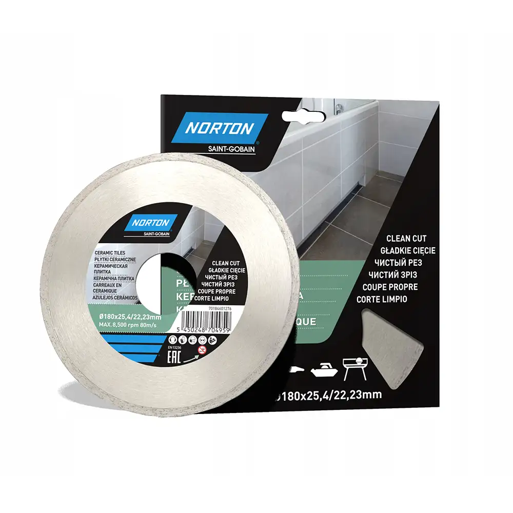 Tarcza diamentowa Norton CEE Ceramic Tiles odznacza się bardzo stabilną konstrukcją korpusu wykonanego ze stali oraz diamentowymi ostrzami spawanymi laserowo, przez co gwarantuje długotrwałe użytkowanie. Produkt wykorzystasz do precyzyjnego cięcia twardych i kruchych materiałów przy użyciu szlifierki kątowej. Do cięcia na sucho i mokro.
