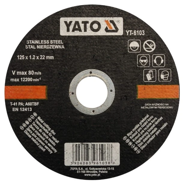 Tarcza do cięcia metalu i stali nierdzewnej 125 x 1.2 mm Yato YT-6103