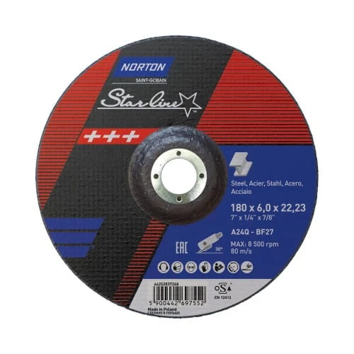 Norton Starline przedstawia kompletną i korzystną ofertę dla wszystkich zastosowań związanych z obróbką metali, z pełną gamą rozmiarów przeznaczoną dla szlifierek kątowych. Zapewnia dobre tempo usuwania materiału, szybkie cięcie, zmniejszony poziom drgań gwarantujący komfortową pracę oraz stałą wydajność dla uzyskania lepszej jakości części.