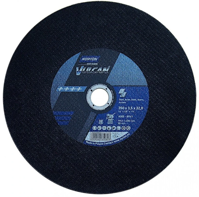 Tarcza Norton Vulcan do maszyn stacjonarnych, do przecinania metalu. Marka NORTON oferuje szeroki asortyment tarcz do cięcia do maszyn stacjonarnych, zapewniając wysokiej jakości i wydajne rozwiązania przemysłowe.