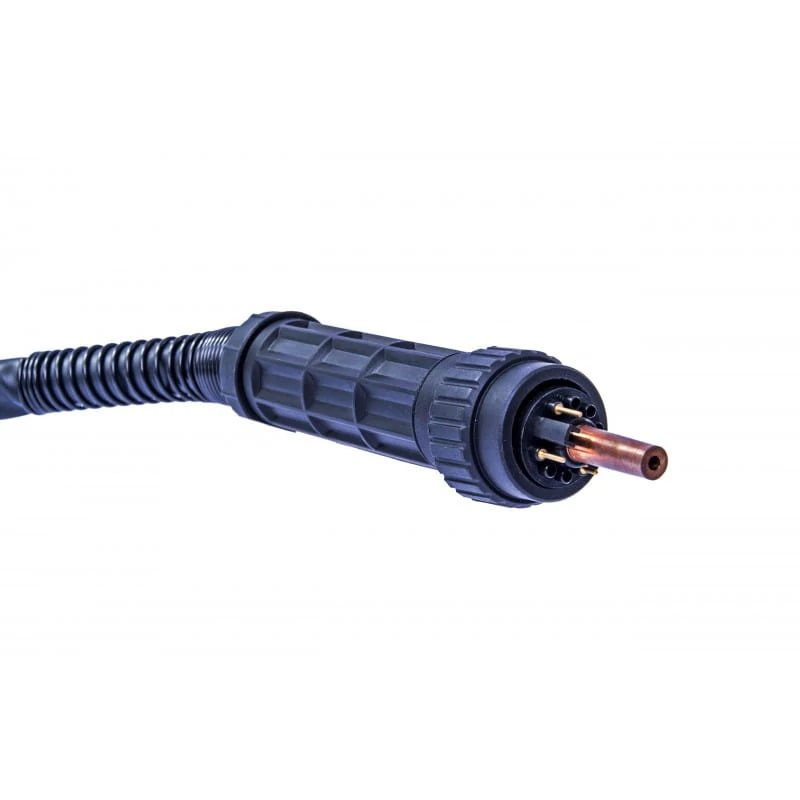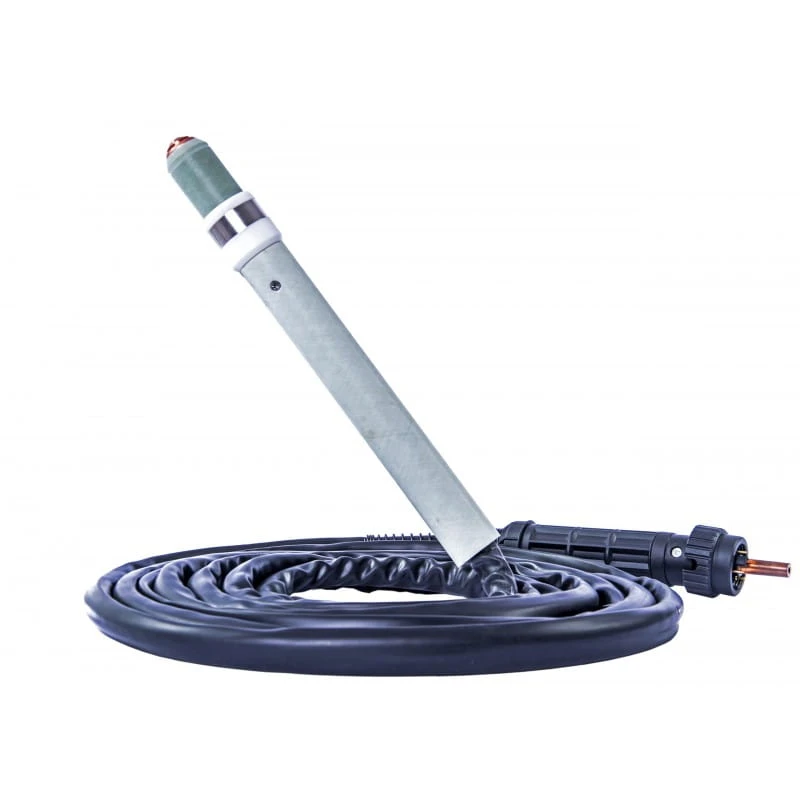 Wysokiej jakości uchwyt MAGNUM przeznaczony do cięcia plazmą powietrzną, chłodzony powietrzem, ze złączem typu Euro i przeznaczony do przecinarek maszynowych. Uchwyt jest w pełni uzbrojony, gotowy do podłączenia.