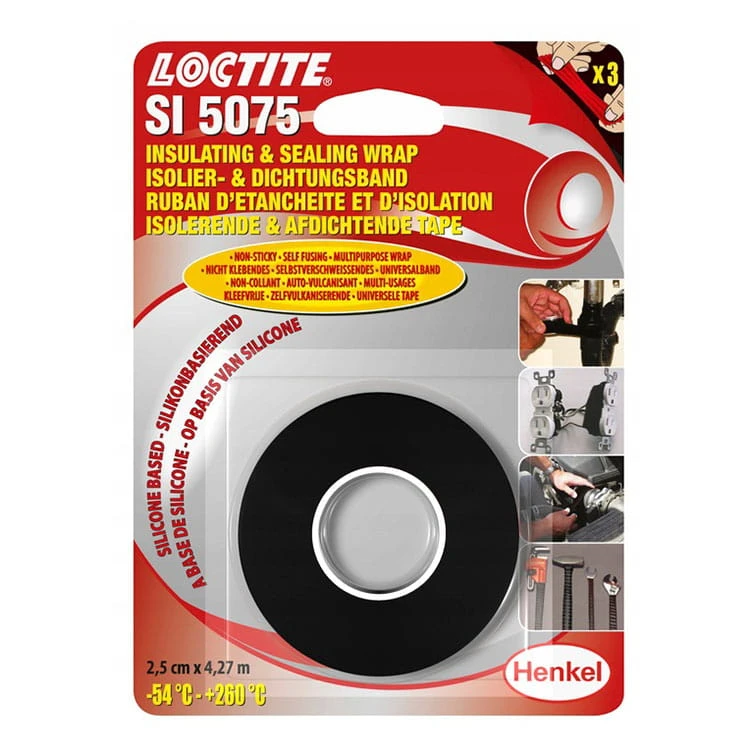 Produkt LOCTITE SI 5075 to niereaktywna taśma silikonowa, idealna do szybkich napraw różnych powierzchni. Taśma ta przylega tylko do samej siebie, co czyni ją szczególnie przydatną w doraźnych naprawach elastycznych węży, przewodów, uchwytów narzędzi oraz izolacji elektrycznej. Ponadto, znajduje zastosowanie w naprawach instalacji sanitarnych. Taśma osiąga pełną wytrzymałość po 24 godzinach.