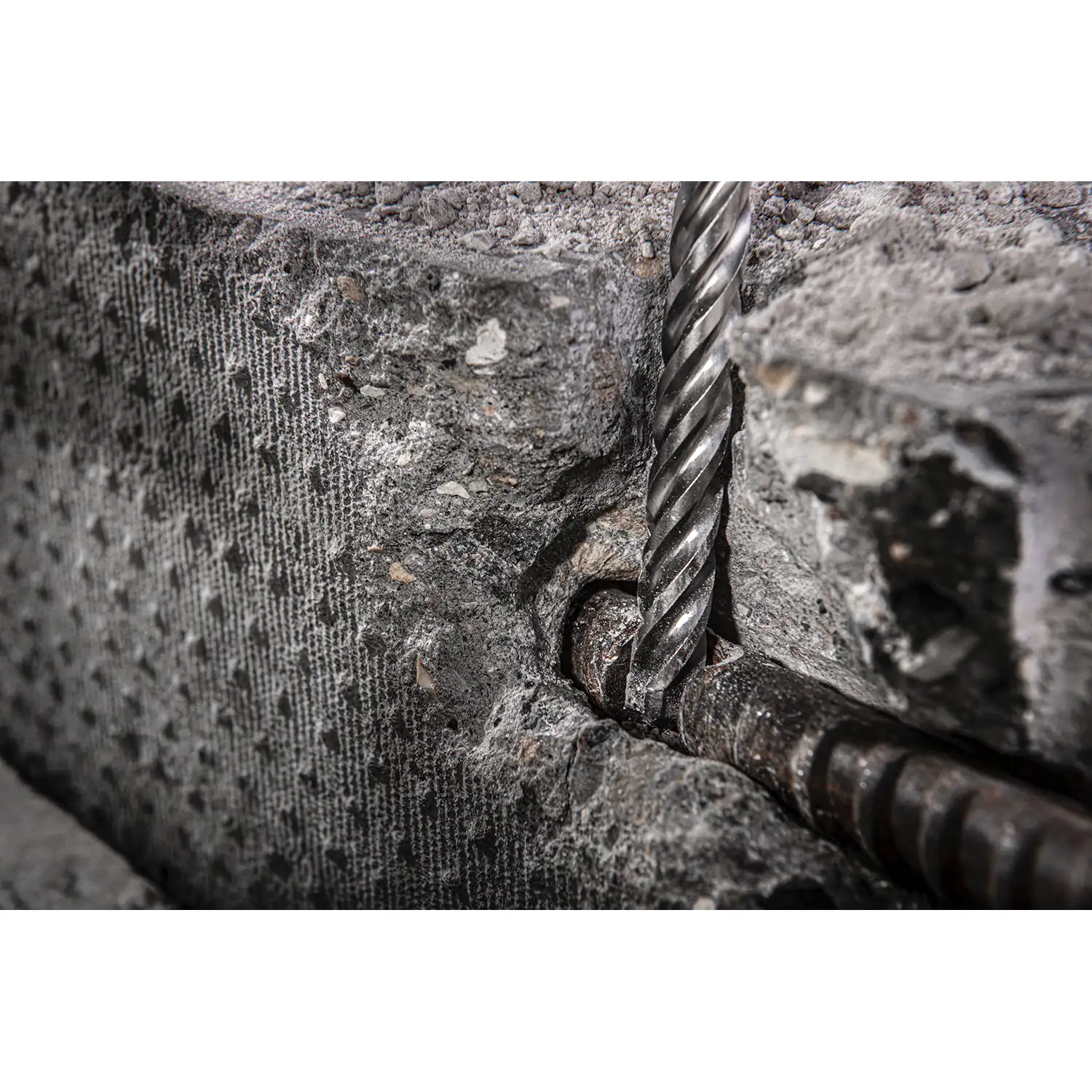 - Wierzchołek centrujący ułatwia rozpoczęcie wiercenia. Geometria widii 4x90° gwarantuje doskonale gładkie otwory oraz redukuje ryzyko zakleszczenia się wiertła przy natrafieniu na pręt zbrojeniowy.