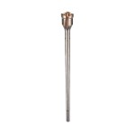 - Nowa konstrukcja i masywne osadzone zęby z węglika zapobiegają uszkodzeniom wierzchołka wiertła i łamaniu się zębów w przypadku zderzenia z prętem zbrojeniowym.