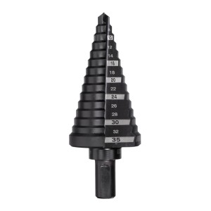 - Zalety wierteł stopniowych w porównaniu z wiertłami tradycyjnymi: - Jedno wiertło wykonuje otwory o różnej średnicy - Więcej możliwości, a mniej noszenia! - Najlepszy sposób na powiększenie istniejącego otworu. - Rdzeń jest nieskręcony i grubszy, a zatem mniej podatny na złamanie. - Dokładniejsze pozycjonowanie otworu, gdyż końcówka wierci natychmiast. - Otwory bez zadziorów, niepotrzebny rozwiertak. - Wiercenie w plastiku bez pęknięć.