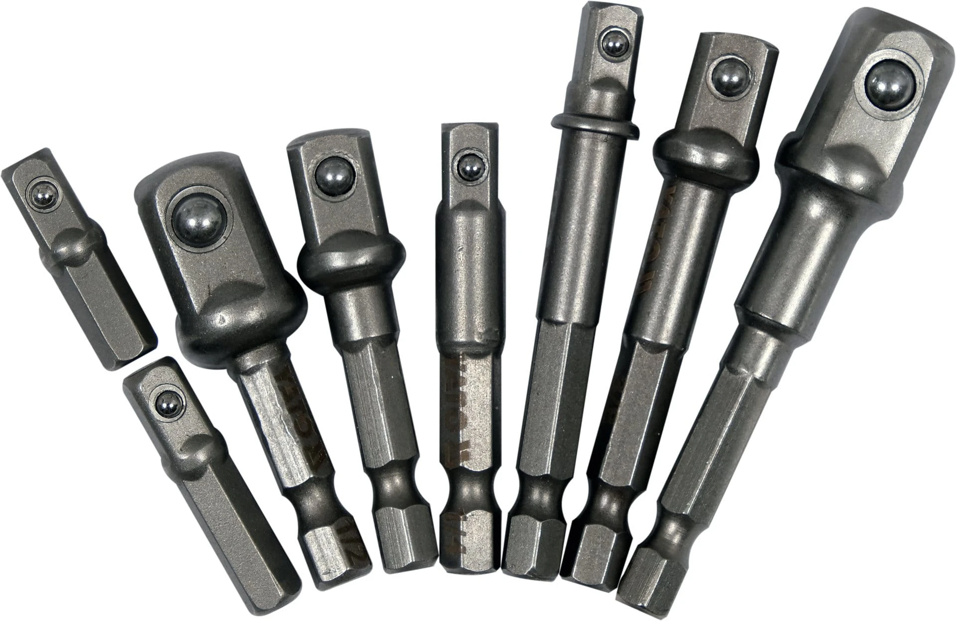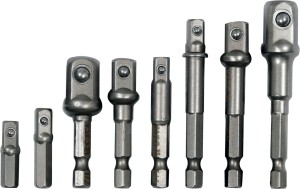Zestaw 8 adapterów HEX marki YATO, umożliwiających pracę z nasadkami różnej wielkości w połączeniu z wkrętarkami, grzechotkami lub ręcznymi uchwytami bitowymi. Adaptery wykonane z trwałej stali, dodatkowo czernione, co zwiększa odporność na korozję oraz poprawia ich trwałość w intensywnym użytkowaniu.