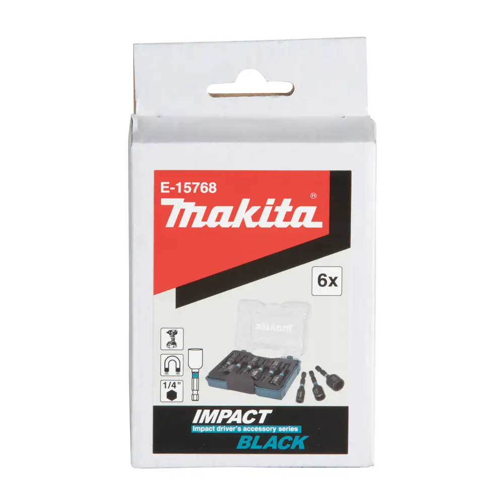 Zestaw udarowych nasadek 1/4" Makita E-15768 to komplet 6 magnetycznych końcówek przeznaczonych do pracy z kluczami udarowymi. Nasadki mają trwałą powłokę ochronną, która zwiększa odporność na korozję i sprawia, że lepiej znoszą intensywne użytkowanie. Całość zapakowano w solidne etui z tworzywa z przezroczystą pokrywą, dzięki czemu łatwo szybko dobrać właściwy rozmiar.
