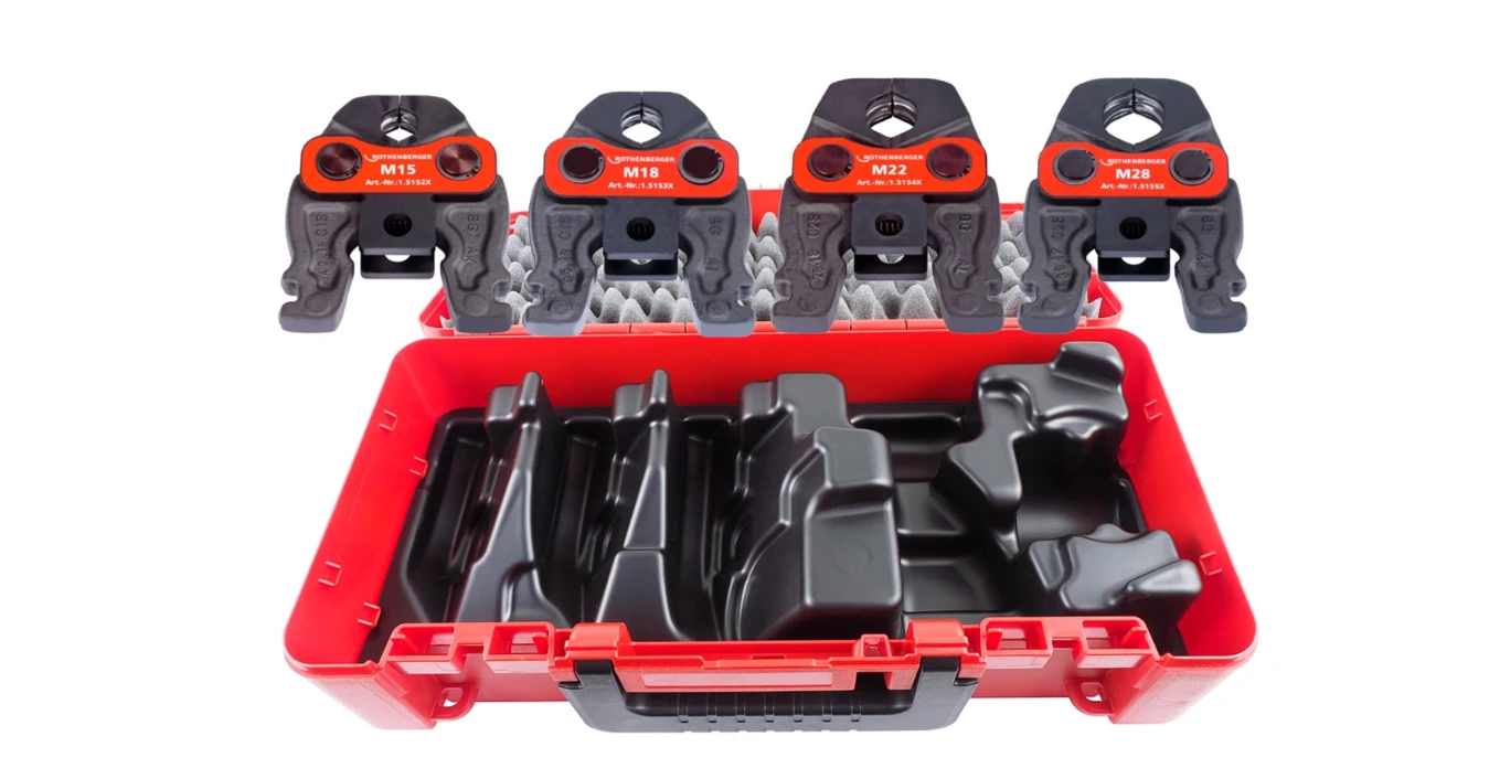 Szczęki zaciskowe ROTHENBERGER o sprawdzonej jakości materiału i wykonania nadają się do systemowego zaprasowywania złączek z metalu i tworzywa sztucznego. Technologia DURA LAZR TEC oraz częściowe hartowanie laserowe zapewniają bezpieczne i precyzyjne zaprasowywanie i jednocześnie zwiększają żywotność szczęk. Rezultatem jest minimalne zużycie i 100% więcej cykli zaprasowania w porównaniu z poprzednią wersją. Dzięki zastosowaniu bardzo odpornej stali specjalnej szczęki zaciskowe ROTHENBERGER nadają się do wszystkich zaciskarek o stałej sile zacisku 19 kN. Ponadto specjalna ochrona antykorozyjna pomaga znacząco wydłużyć ich okres eksploatacji.
