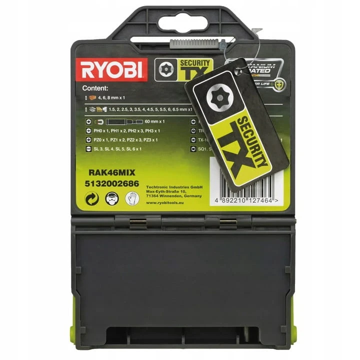Zestaw wierteł i bitów RAK46MIX marki RYOBI to idealne akcesorium na wyposażeniu warsztatu szanującego się majsterkowicza. Praktyczny zestaw który przyda się każdemu.