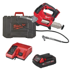 Smarownica Milwaukee M18 GG-201C AKU 18V to profesjonalne narzędzie do smarowania maszyn i urządzeń. Posiada mocny silnik 18V, który zapewnia ponad 690 barów maksymalnego ciśnienia pracy. Smarownica jest dobrze wyważona i ergonomiczna, a także ma trzy możliwości załadunku: kiełbasa, nabój lub wysysanie. Wbudowany schowek na wąż, pasek na ramię i wskaźnik LED -— większa wygoda użytkownika i skrócenie czasu przestojów