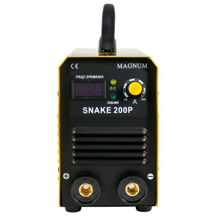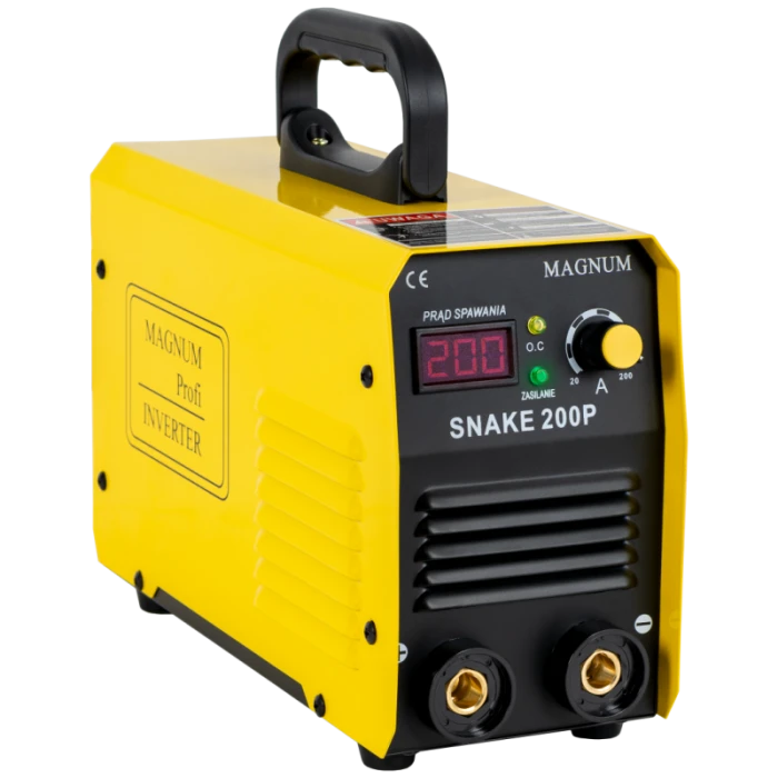 Urządzenie inwerterowe SNAKE 200 PS marki MAGNUM jest lekkim, przenośnym źródłem energii. otulonymi różnych gatunków stali niestopowych, niskostopowych, wysokostopowych, nierdzewnych, żaroodpornych, miedzi, żeliwa. Urządzenie charakteryzuje się dużą sprawnością 200 A/60% oraz znakomitą charakterystyką łuku dla elektrod rutylowych i zasadowych.