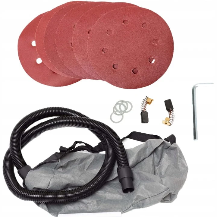 W celu lepszego odprowadzania pyłu w urządzeniu stosuje się papiery ścierne z otworami, jest to znacznie lepsze rozwiązanie niż odprowadzanie wyłącznie krawędziowe. Funkcja regulacji obrotów silnika pozwala na dopasowanie prędkości obrotów tarczy do szlifowanego materiału. Dodatkowo w urządzeniu zastosowano układ płynnego startu, dzięki temu rozwiązaniu urządzenie nie startuje od razu z pełnymi obrotami. Ergonomiczne uchwyty pokryte gumową powłoką antypoślizgową, zwiększają komfort i precyzję podczas pracy z urządzeniem. Dodatkowym atutem szlifierki jest jej niewielki rozmiar, co znacznie ułatwia transport i przechowywanie.